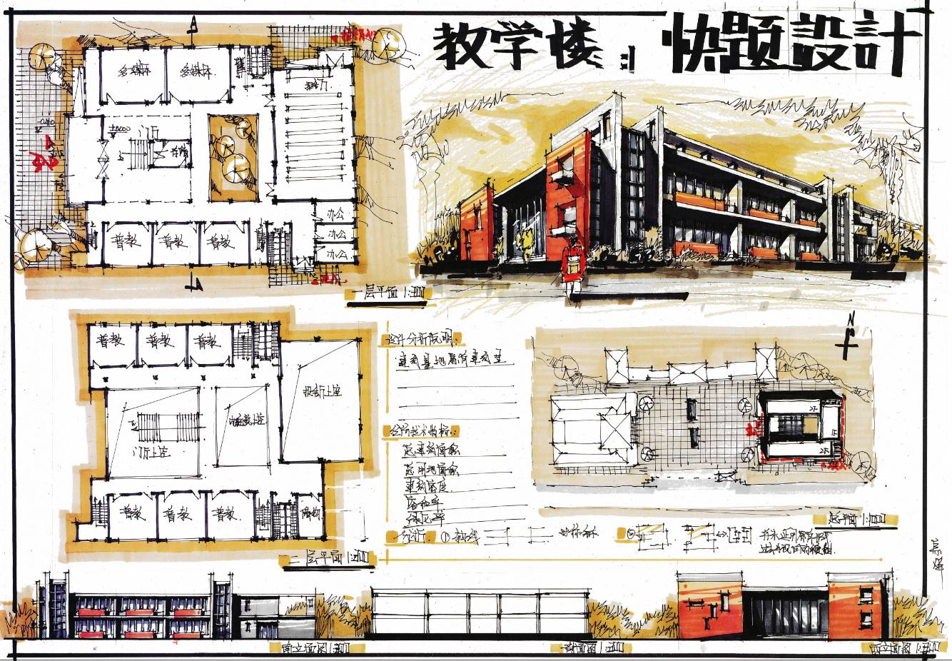 建筑快題設(shè)計是對建筑方案設(shè)計的高度概括和提煉,本資料僅僅是建筑快題設(shè)計的一種示例,通過大量研讀提高規(guī)律性認(rèn)識,運用到自己的設(shè)計實踐中去。