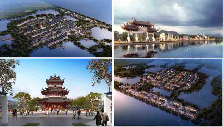 北岳家莊新村村口正在規(guī)劃建設(shè)一座村口牌坊,左側(cè)是三支船漿組成的“川”字,右側(cè)由兩側(cè)古書構(gòu)成“頁(yè)”字,左“川”右“頁(yè)”正好組成一個(gè)“順”字的牌坊寓意出入平安和順。剛剛完成主體建設(shè)的北岳家莊村“揚(yáng)帆廣場(chǎng)”,由“水之韻、帆之舞、風(fēng)之聲、童之趣”四個(gè)版塊組成,既具備休閑娛樂功能,又集中體現(xiàn)了湖區(qū)村特有的元素和風(fēng)格。特別是由五面造型藝術(shù)的風(fēng)帆組成的“帆之舞”版塊,與村口“順”字牌坊遙相呼應(yīng),寓意“一帆風(fēng)順”,也預(yù)示著城鄉(xiāng)發(fā)展就像鼓帆而行的快船,順著社會(huì)主義新農(nóng)村建設(shè)的東風(fēng),乘風(fēng)破浪,揚(yáng)帆遠(yuǎn)航。